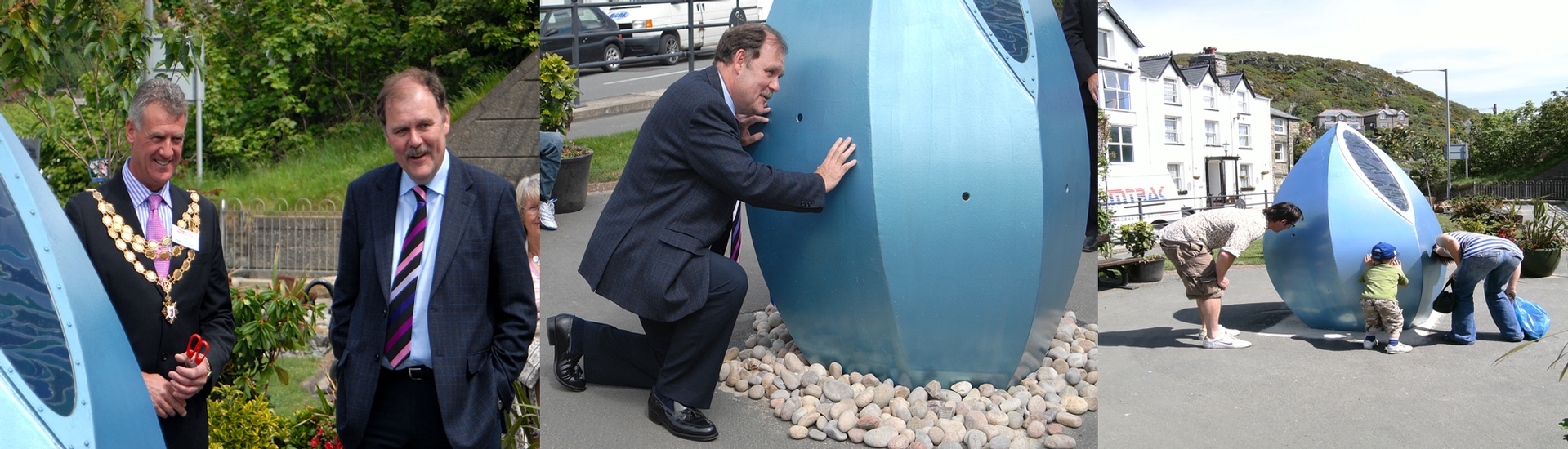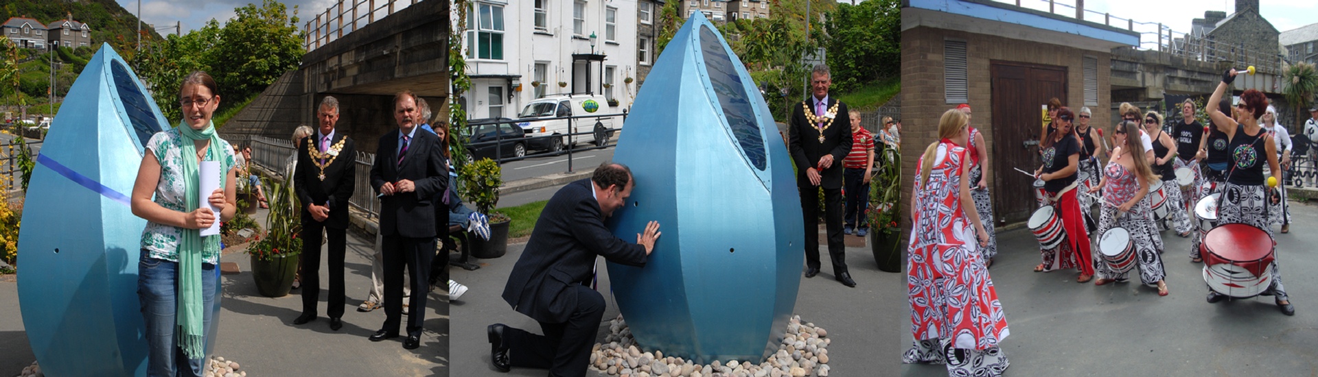 Early in 2008, BRIG was approached by Ceri Wyn Morris, Project co-ordinator for O Dan y Môr a’i Donnau / Living Coasts Living Seas project about possible co-operation with BRIG. Ceri was impressed by the work Barmouth Resort Improvement Group had done, and 4 months after the first meeting, the impressive and original new sculpture was put in place in the beautiful Harbour Gardens for everyone to see and enjoy.